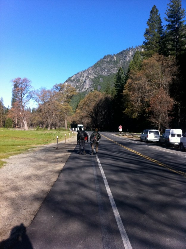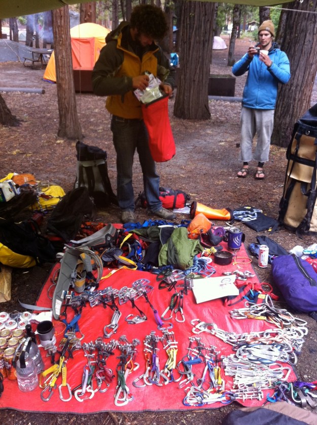 I had been complaining to Aaron about yesterday’s spectacle of me hanging on my gear, then slip-sliding off a variety of 5.10 routes I had sent on top rope last week. As is often the case of climbers well versed in face climbing, my days here in Yosemite have been humbling. The more I climb here, the more I realize how unprepared I was to climb the Salathe with my buddy Steve-O. Having a bum foot doesn’t help, and somewhere towards the end of my fight yesterday with “Lunatic Fringe” (5.10c), I tweaked a tendon in my shoulder quite badly. The pain still present this morning, and anytime I raise my arm above my shoulder socket, is a strong reminder that my roadtrip thus far has probably inflated my ego more than my muscles. Stewing in camp Monday night watching my friends pack some of my gear for a climb I wasn’t able to go on left me feeling punchy and I took it out on my kettlebell. I haven’t been keeping up on my gym training, and I was sore before I even started climbing on Tuesday morning. Dumb. Really dumb, because right when I needed it most (150′ off the deck), I was gassed in all the same muscle groups I had wrecked the night before. Backing off the Salathe was a good choice, and also made me face some questions about what I can do to properly ensure I don’t have to bail off my patrol on Denali next month.