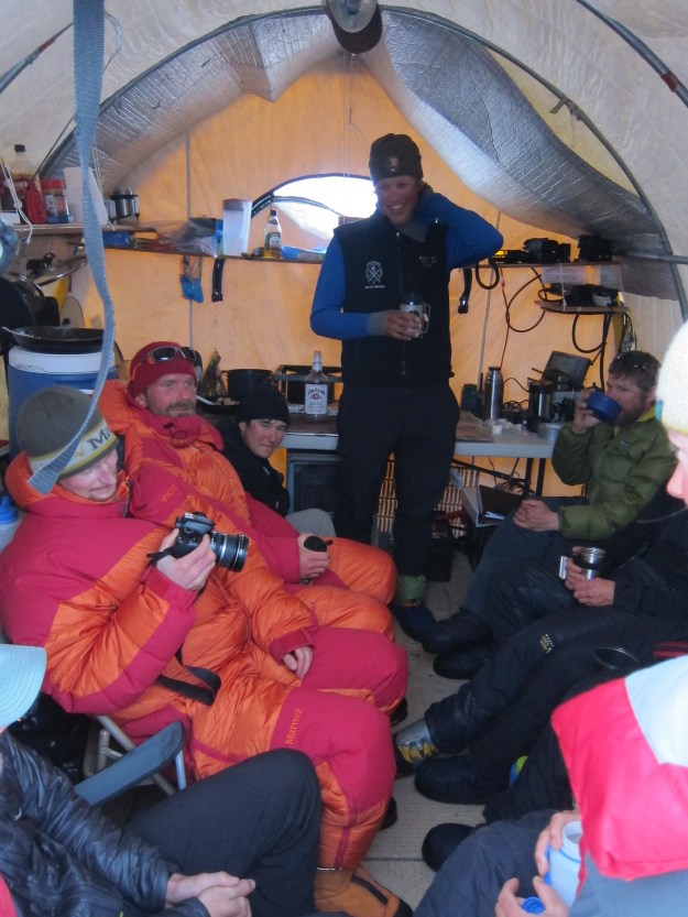 Our patrol (JP, me, and Chris), Kevin’s patrol (Kevin, Tony, Mark, Mik, and Andy), plus two badass Swedish skiers (Andreas and Magnus), and two strong Icelanders (Robert and Gummi) piled into the tent to swap stories and kill time. The Scandanavians inspire me to keep looking outward with my climbing as a vehicle not only for stripping away baggage, but embracing new parts of the world while being far from home.