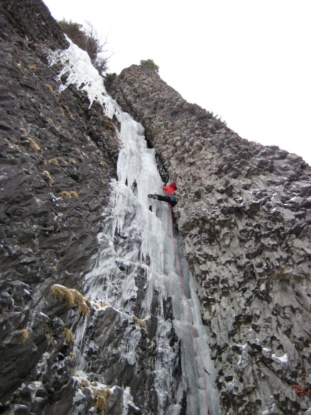 Feeling the thrill and managing the risks, on The Thrill is Gone- Hyalite Canyon, MT. (photo by John Saunders)