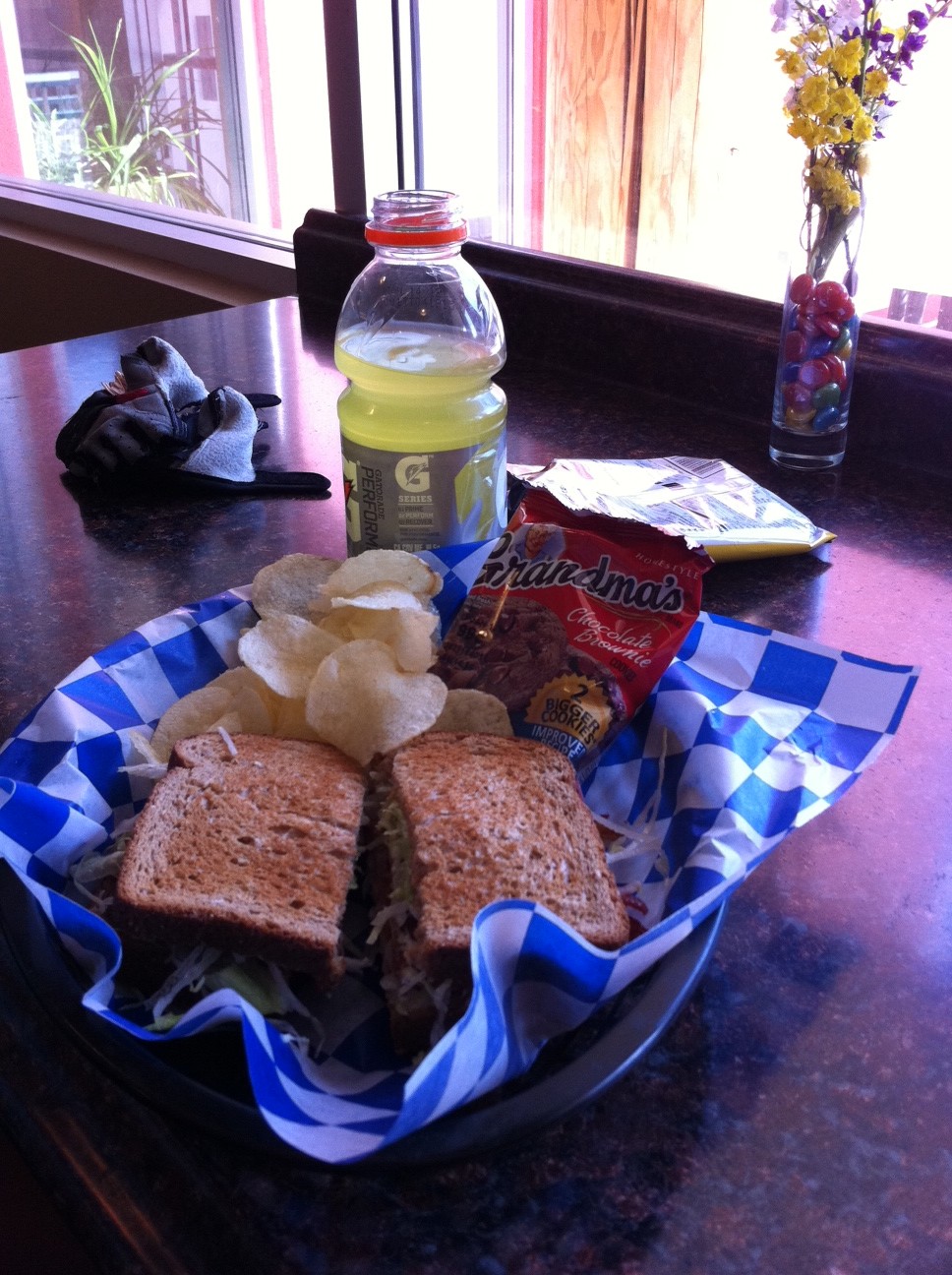 Unfortunately, getting the climbing done while it was cool put us in the sun, and in the desert around 2pm.  Careful that we still had many miles to Smith, we knew proper nutrition was imperative: