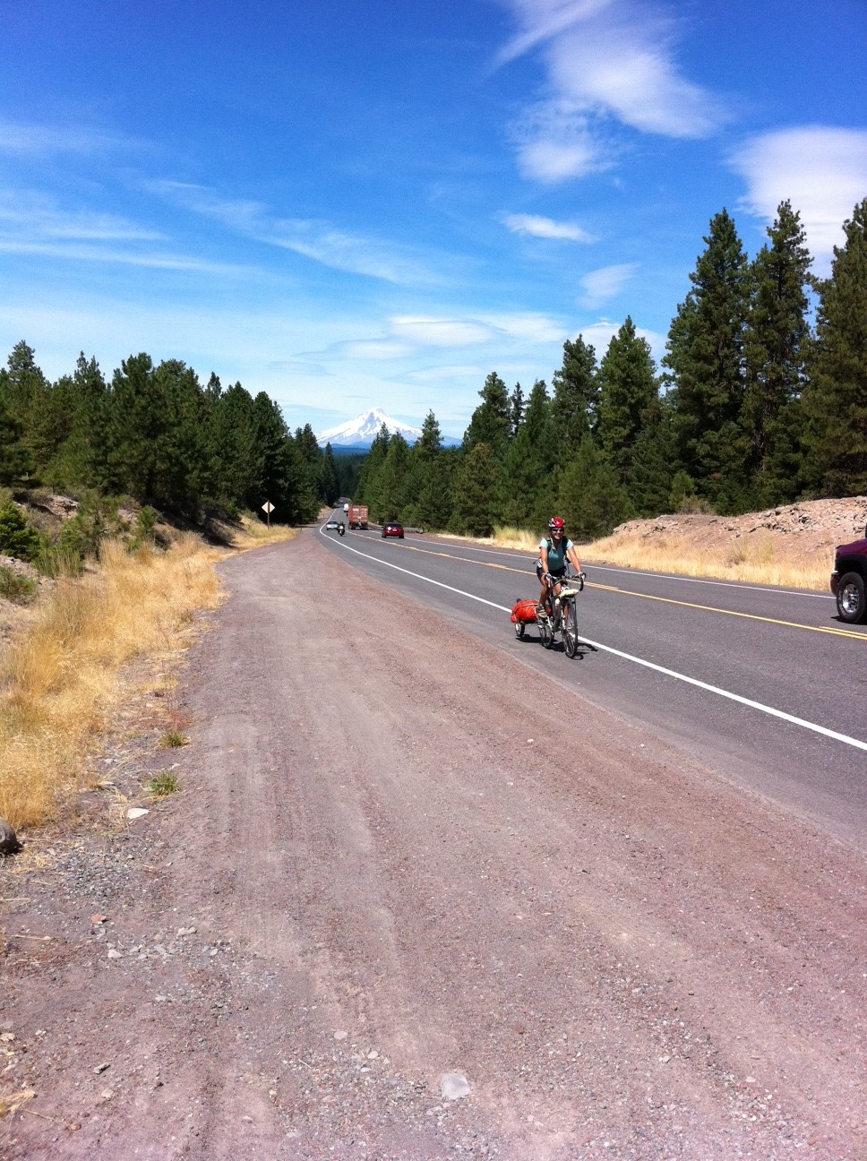 There are 3 passes to get around Mt. Hood, then about 30 miles of downhill, and temperatures stayed cool while we worked through most of the climbing.
