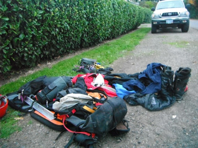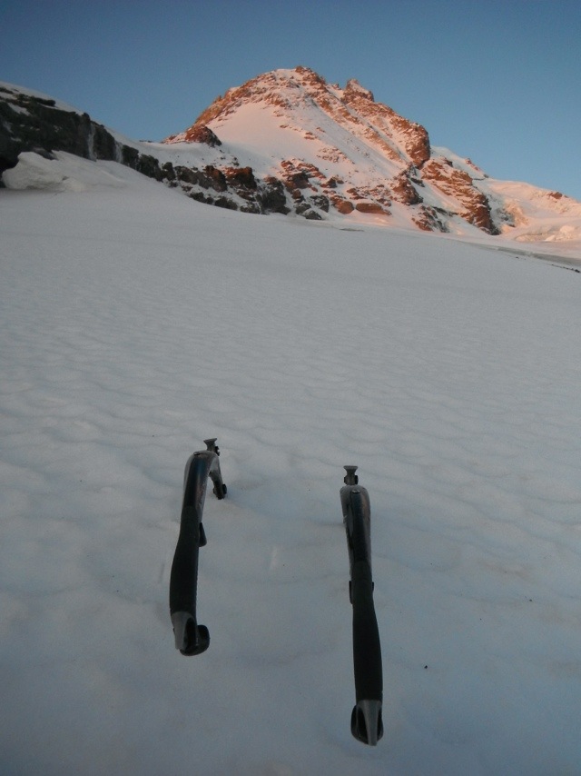 It’s what we say when we get up at 2am, hike for 8 hours with a pack full of ice climbing gear on our backs, and get back to the car without really climbing anything. My friend Chris called me last Sunday and proposed we climb the North Face route on Mt. Hood this morning. Word on the street was that climbing conditions were good and the weather looked solid. The North Face has been on my climbing ticklist since I started ice climbing 2 years ago, and it seemed like I could just squeeze it in between driving back from San Jose and going to Montana. The route doesn’t come “in” very often, and the chance to do it with one of the most influential climbers in my life was prime. We geared up at Chris’ place last night and drove up to the mountain.