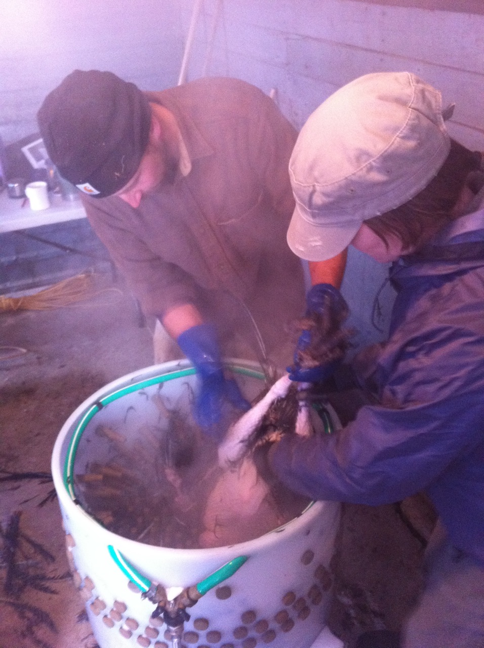 I had expected to feel apprehensive, but instead I felt excited to learn and get to work- I was going to participate in my own meat consumption for the first time. We had 6 or 7 volunteers by 830am and that was enough to get started. Jacob walked us through the whole process: