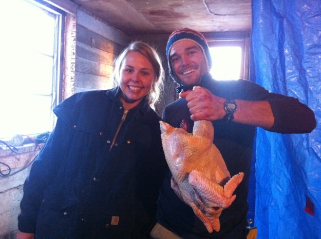 It would be easy to describe this weekend with words like “intense,” “gross,” or “brutal,” but perhaps the best adjective is simply “real.” The work was hard, humble, and rooted in the simple reality that if we want to eat turkey, this is what it looks like in the best possible light. My friend Hannah and I drove up to Conrad, Montana to help Courtney and Jacob (owners of Prairie Heritage Farm) slaughter their heirloom breed, organic, free-range turkeys just in time for Thanksgiving. I had heard about the great work that Courtney and Jacob were doing at the AERO conference I attended at the end of October, and just happened to hear they were looking for volunteers to help with the slaughter. Jacob and Courtney are simply beautiful people full of integrity and passion, and I jumped at the chance to get to know them and learn more about their farm. Knowing it was up her alley, I mentioned the event to Hannah on Thursday night and we drove east in a snowstorm on Friday afternoon.