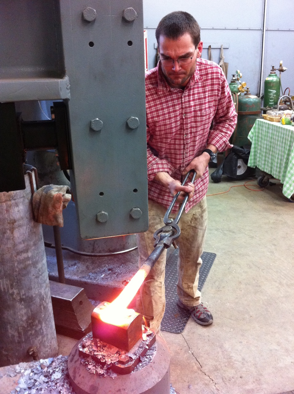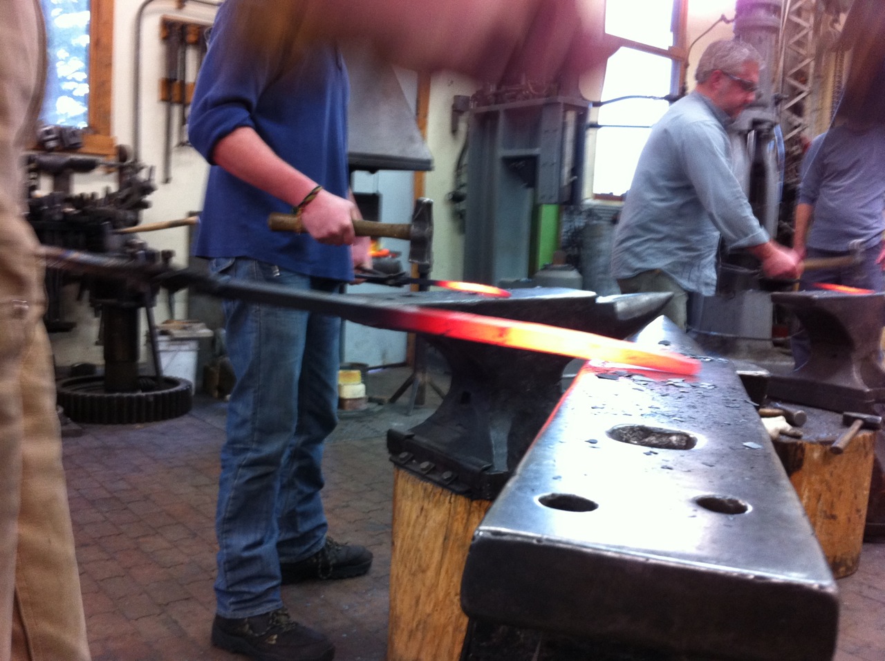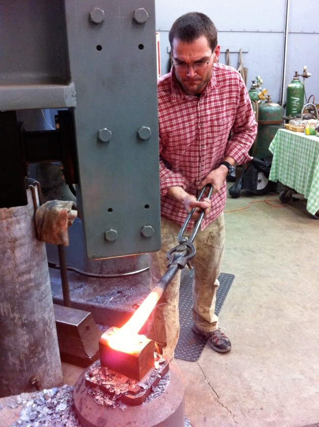 After a few practice rounds we were running short on time, and I had a whole new respect for the precision that one can wield with a hammer and hot metal (which I had not yet developed). Fortunately, Jeff was more than generous with his advice, and I started to get the hang of it.