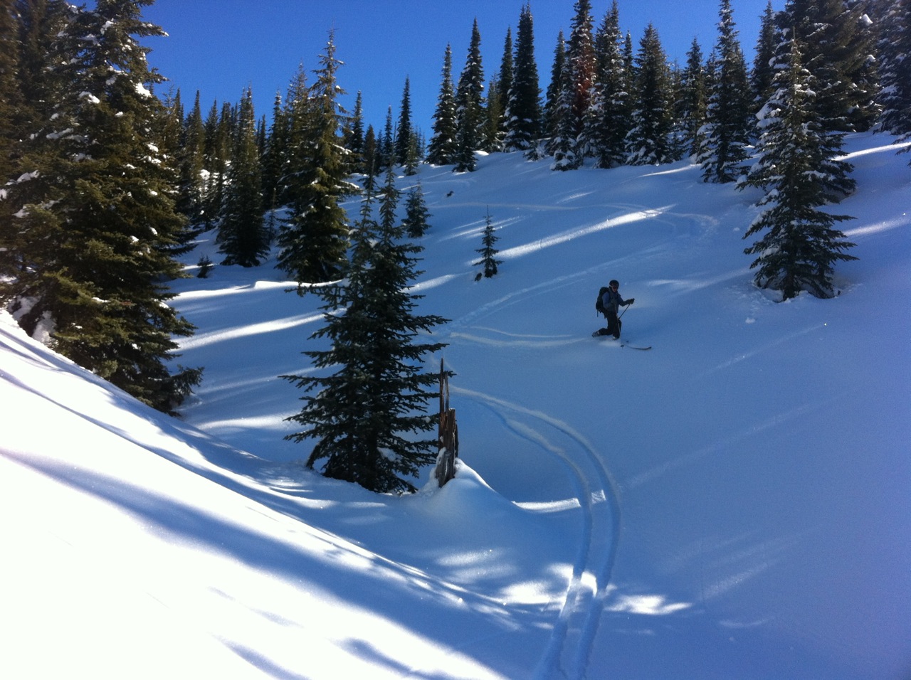 We had such a good time, the only logical thing to do was do it again, so early Sunday morning we headed back up to Lolo Pass proper and skinned as far away from the snowmobiles as possible. We missed Gwen’s boyfriend Ross joining in the fun, but we made sure to get in some extra laps for him.