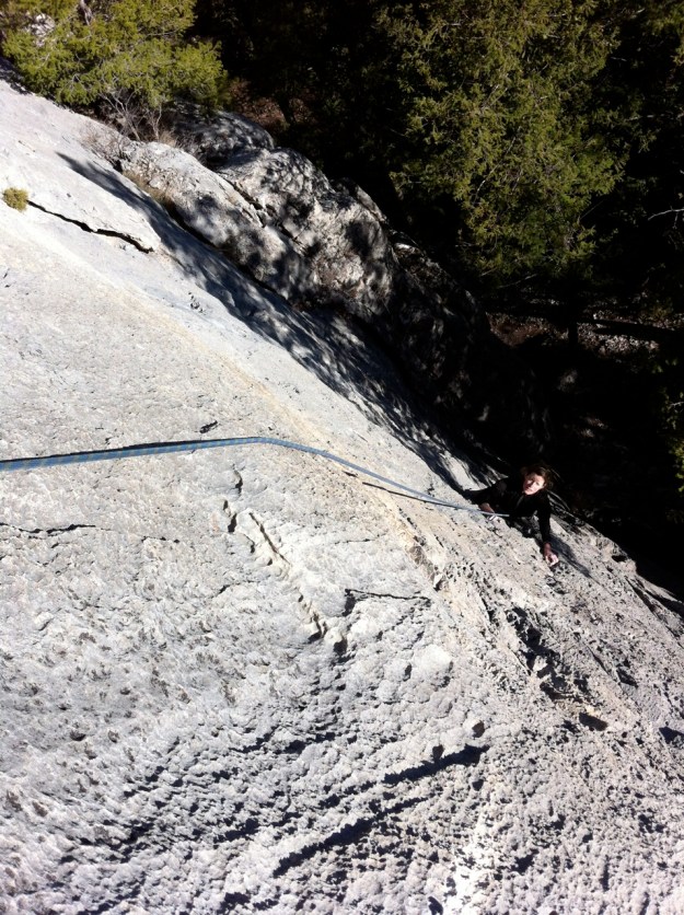 The climbing is mostly solid limestone with funky little pockets and sharp edges- and reminds me a lot of many pitches at Smith Rock.