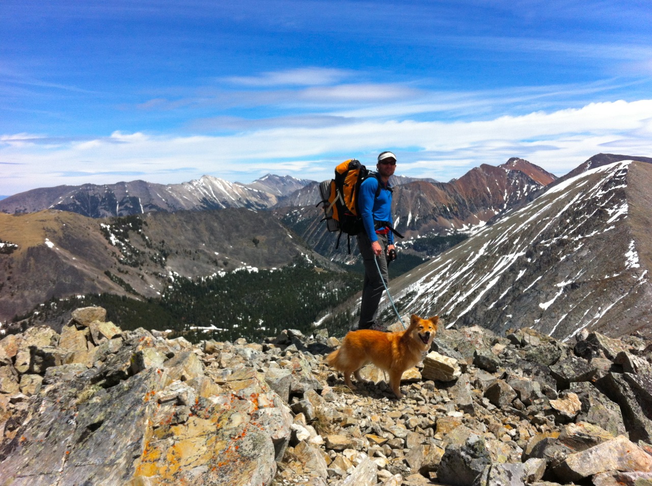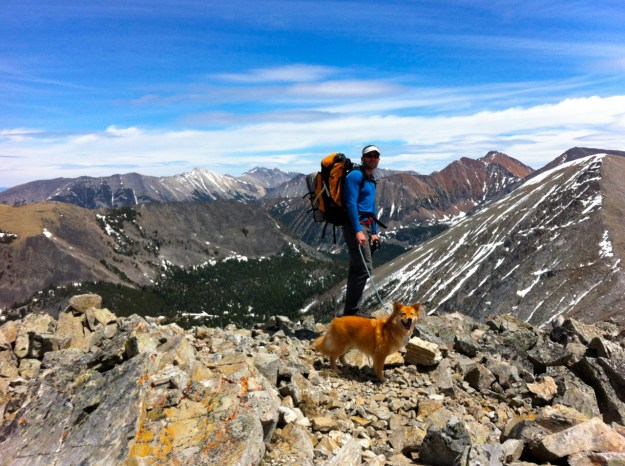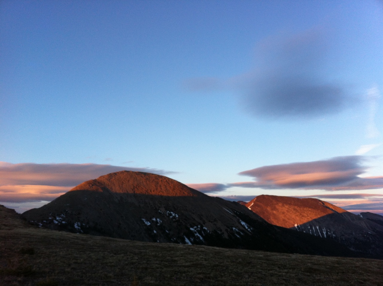 David’s dog Bisbee joined us for the adventure, and although she ultimately proved to limit our range of terrain, we were grateful for her company. We found camp on a barren plateau at 9,400′ and after a gorgeous sunset, hunkered down for a very windy night.