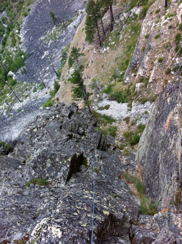 Saturday I got the climbing itch, bad, and knew I’d be far from adventure activities due to some upcoming work commitments, so I tracked down a partner and headed out for an easy romp up No Sweat Arete (4p, 5.7, II) in Mill Creek. Overcast skies kept temperatures reasonable, and after over a month of being off the rock, getting in a few pitches felt awesome. My right hand is still well injured from tearing a pulley in early June, but my foot is coming back together nicely so mellow terrain was in order. There’s still nothing I enjoy quite like a nice multipitch outing.