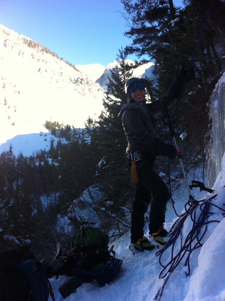 Saturday though, I was more than happy to get back in the habit of finding good ice climbing in Finley Creek. My friend Tess joined Sarah and I for a perfect day under blue skies and many top rope laps.