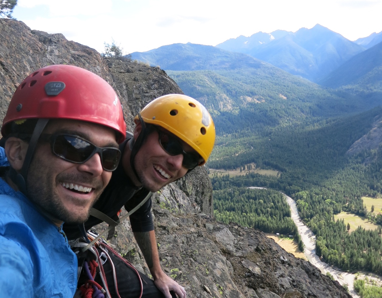 For his many wonderful qualities, Dustin has reynouds syndrome, and enduring cold and wet is not a good vacation activity. To be fair, I usually like an equally willing partner to suffer with if I’m going alpine climbing. We headed down valley for warmer temps and bolted multi-pitch outside of Mazama. Dustin had never been on a multi-pitch climb, so I figured we would start “easy.”