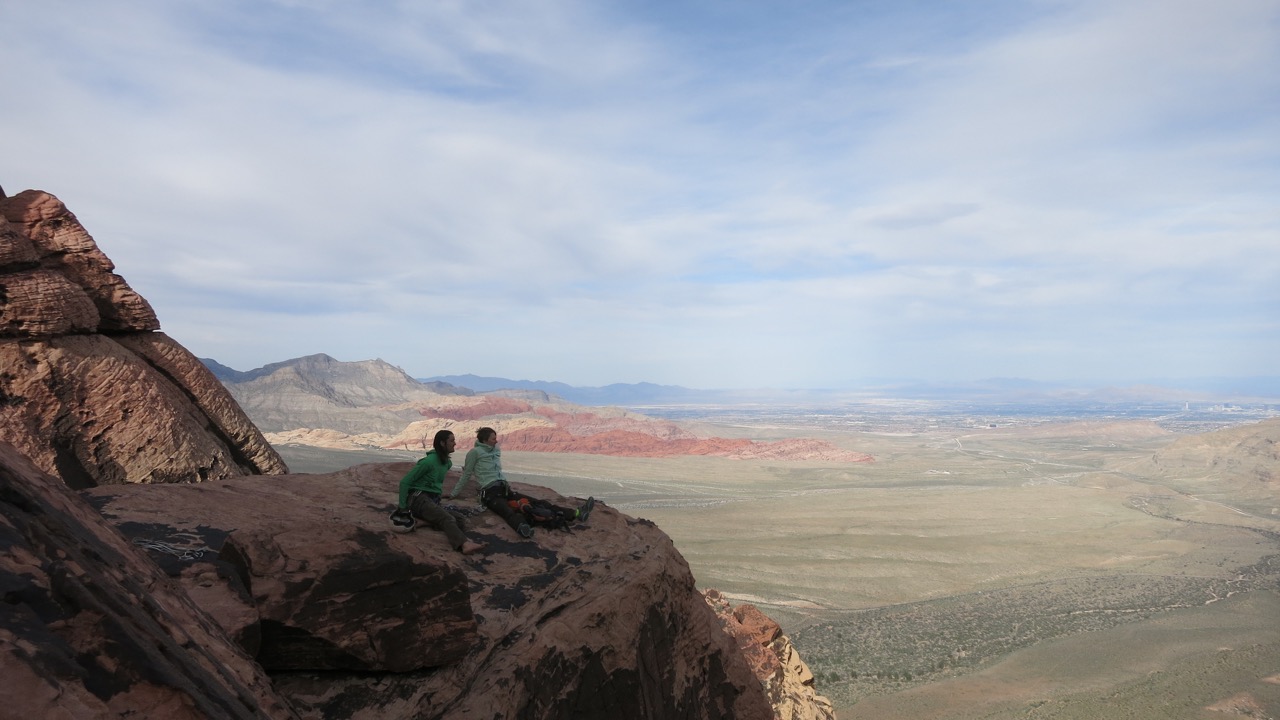 Getting a good moderate route to yourself on a weekend day in Red Rocks is no small feat, and I was relieved to find the wall empty after the 90 minute walk. The climbing was excellent, but I did a poor job of managing exposure while leading a beginner. Abigail did a wonderful job of facing her fears and trusting my leads while we dispatched the 500′ face. Once we were on the walk-off though, her running legs kicked in, and she led all of us back to the car.