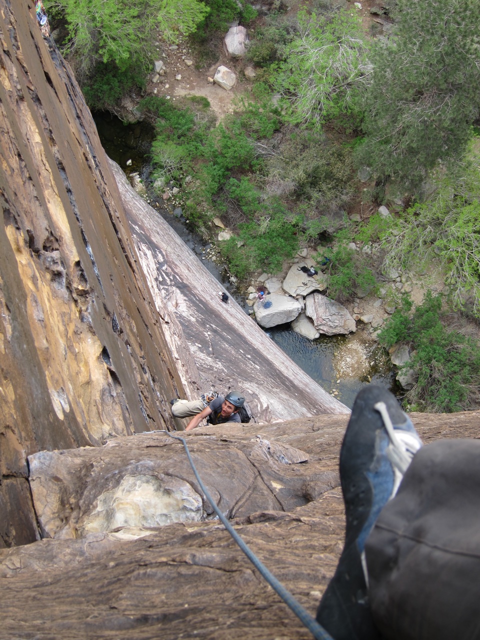 From the belay ledge on pitch 3 of "Dark Shadows", Pine Creek Canyon, Red Rocks. This climb was Jordan's first real multipitch trad route.