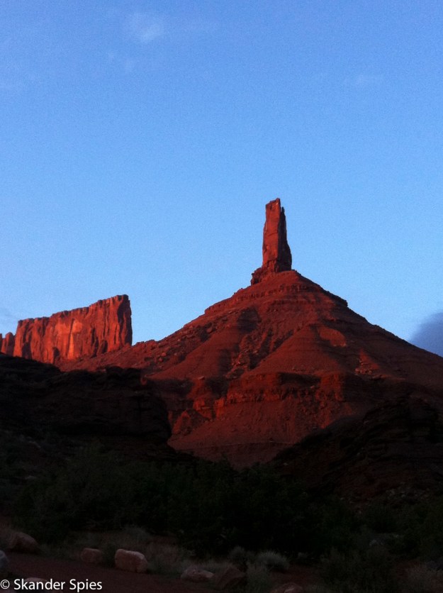 We found a second stand of cactus and moved the car further. As we closed in on the crest of the hill, two mountain bikers came down the trail and gave us a push. We rolled it all the way to the second wash. Booyah. I called AAA, the agreed to send a flatbed with a winch. The mountain bikers took off. Jordan and I started ferrying gear to the smooth gravel. Did I mention we packed too much stuff? Ash, the tow truck driver was about as great a guy as you could ask for, and once he found us (took a while), was generous with his time in getting us out. We loaded the gear back into the car for a trip to the campsite. Once on the road, he informed me that his boss was requiring me to pay $250 for the “off-road” portion of the extrication not covered by my AAA. Awesome, but whatever. I knew we were in deep.