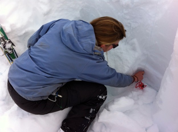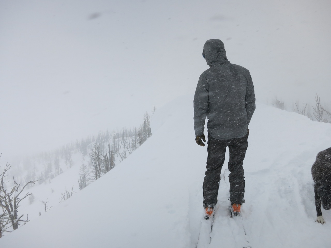 Looking into a different sort of tempest. Simon and Madison evaluate the “spring skiing” on Gash Point.