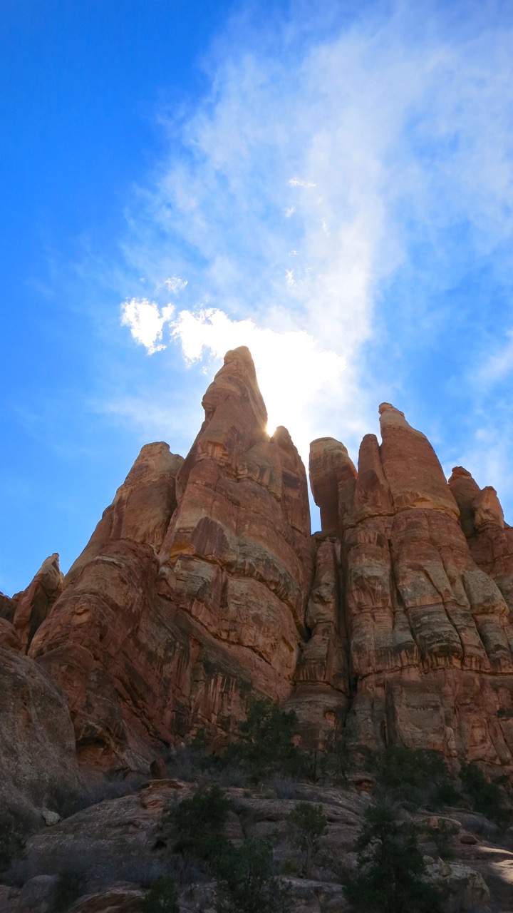 Vicki, another Missoula friend and newbie to Indian Creek also showed up on Sunday, and with Dave, Damian, and Darcy, we continued to sample a variety of spectacular cliffs. After a few more days, I could tell my body was spent. I had just a little bit more, and I had always wanted to do the Easter Island tower in the Bridger Jack formation- it is short, classic, and fun. The spine of towers boasts a huge variety of routes, and Easter Island is the easiest of them all.